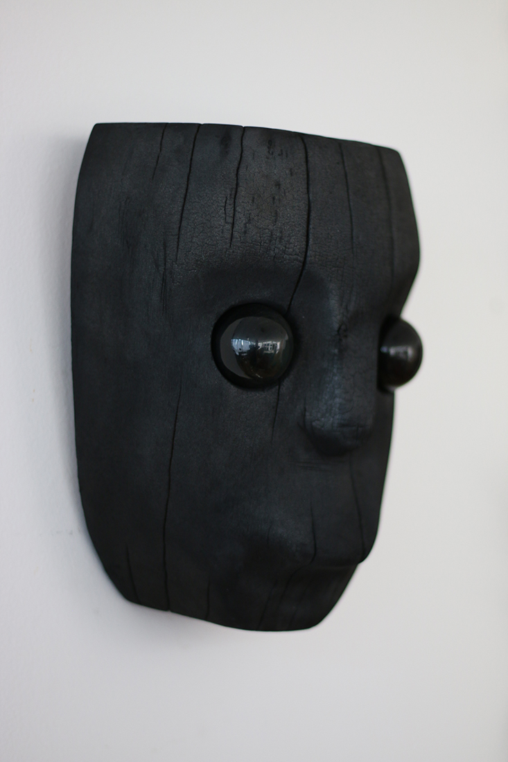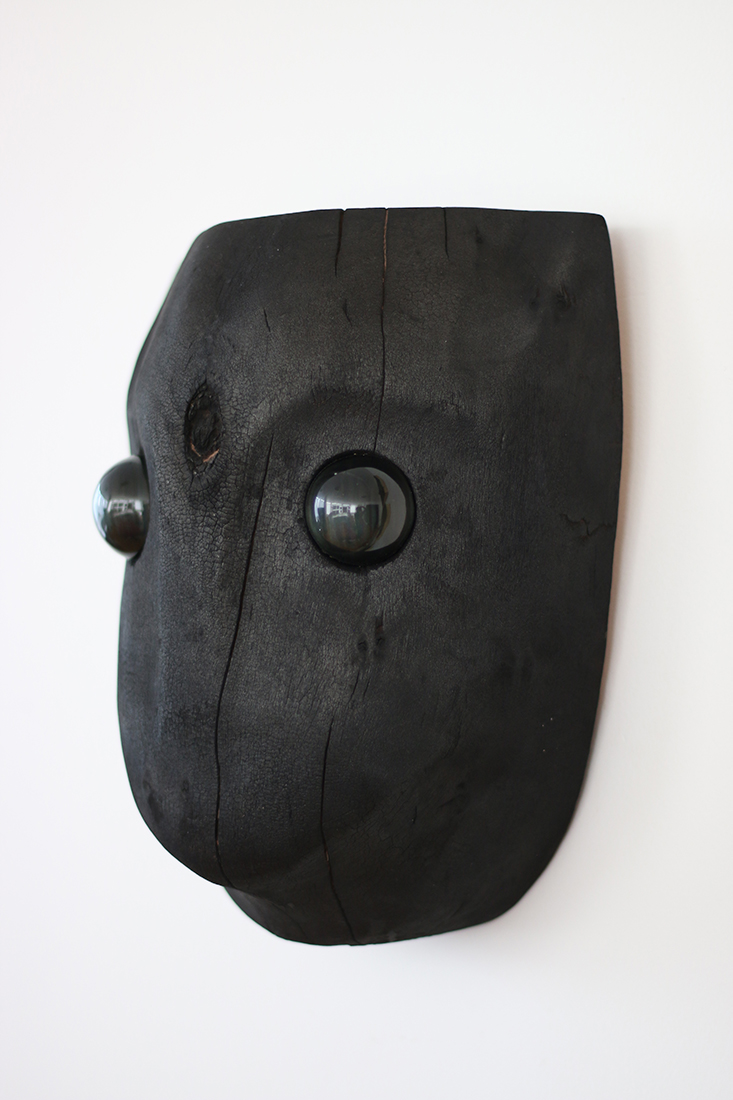 Mask Chuyachaki 2, 2023 masque non fini en bois d'avocat, obsidienne, os de poisson sacrificiels 25 x 231x 26 cm