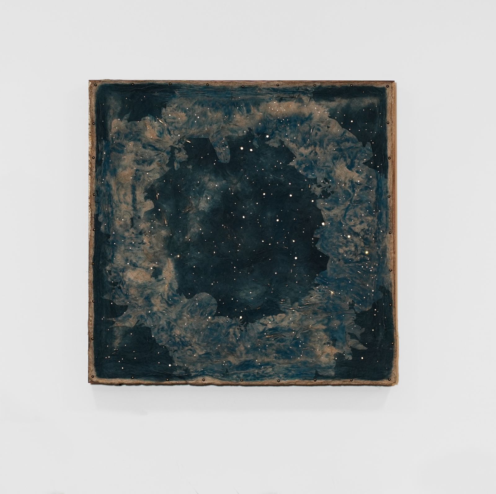 Solar eclipse 2, 2025 cyanotype sur papier rituel, caisson lumineux 102x102x6 cm