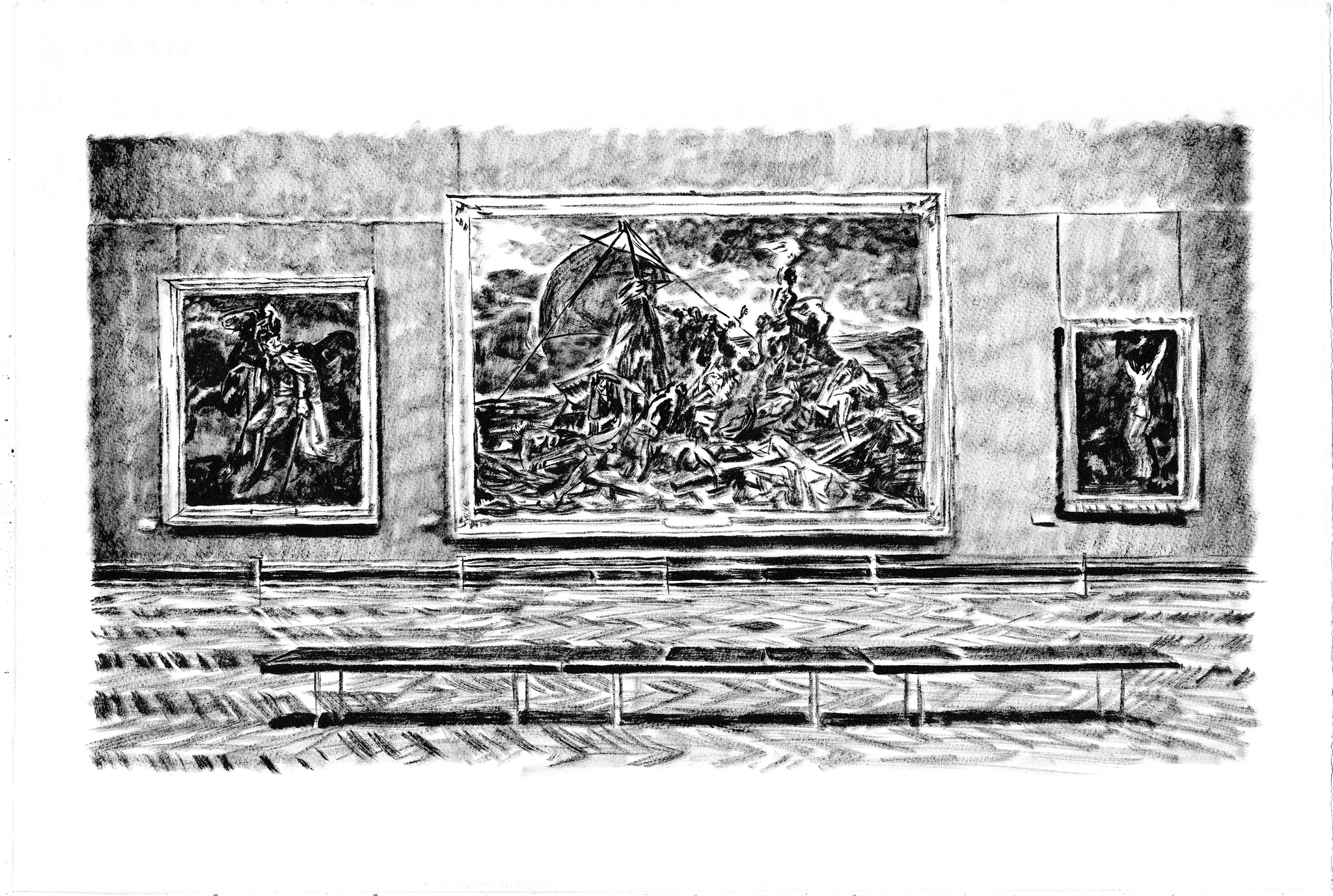 Sequence #27, 2013 - 2015 serie Panic Book fusain sur pages de livre 14 dessins ( 24x31 cm chaque )