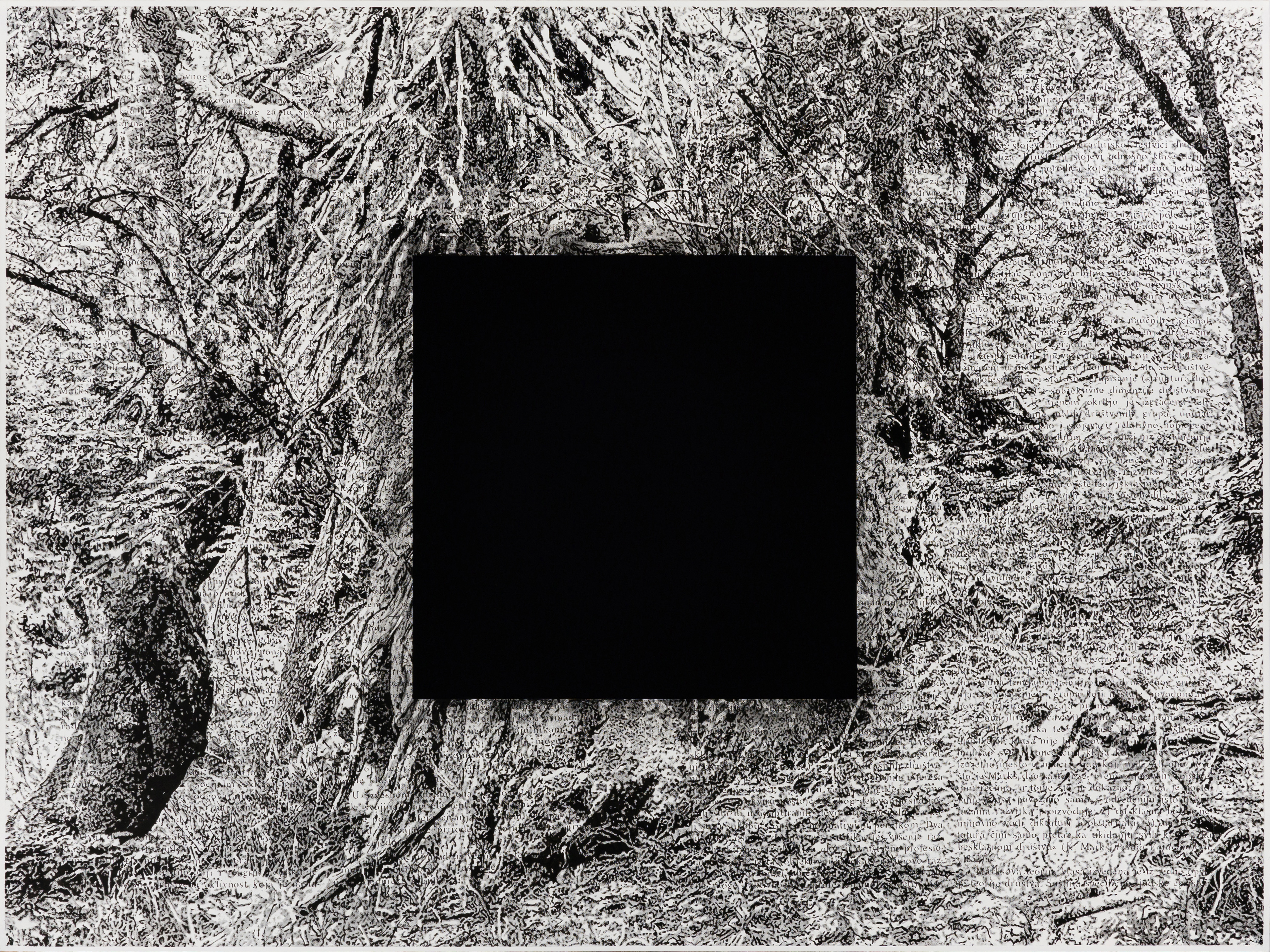 Frame for Black Square Returns - Sequence #45, 2023 -2025 Serie Black Square Returns encre sur pages de livre 29 x 21 cm