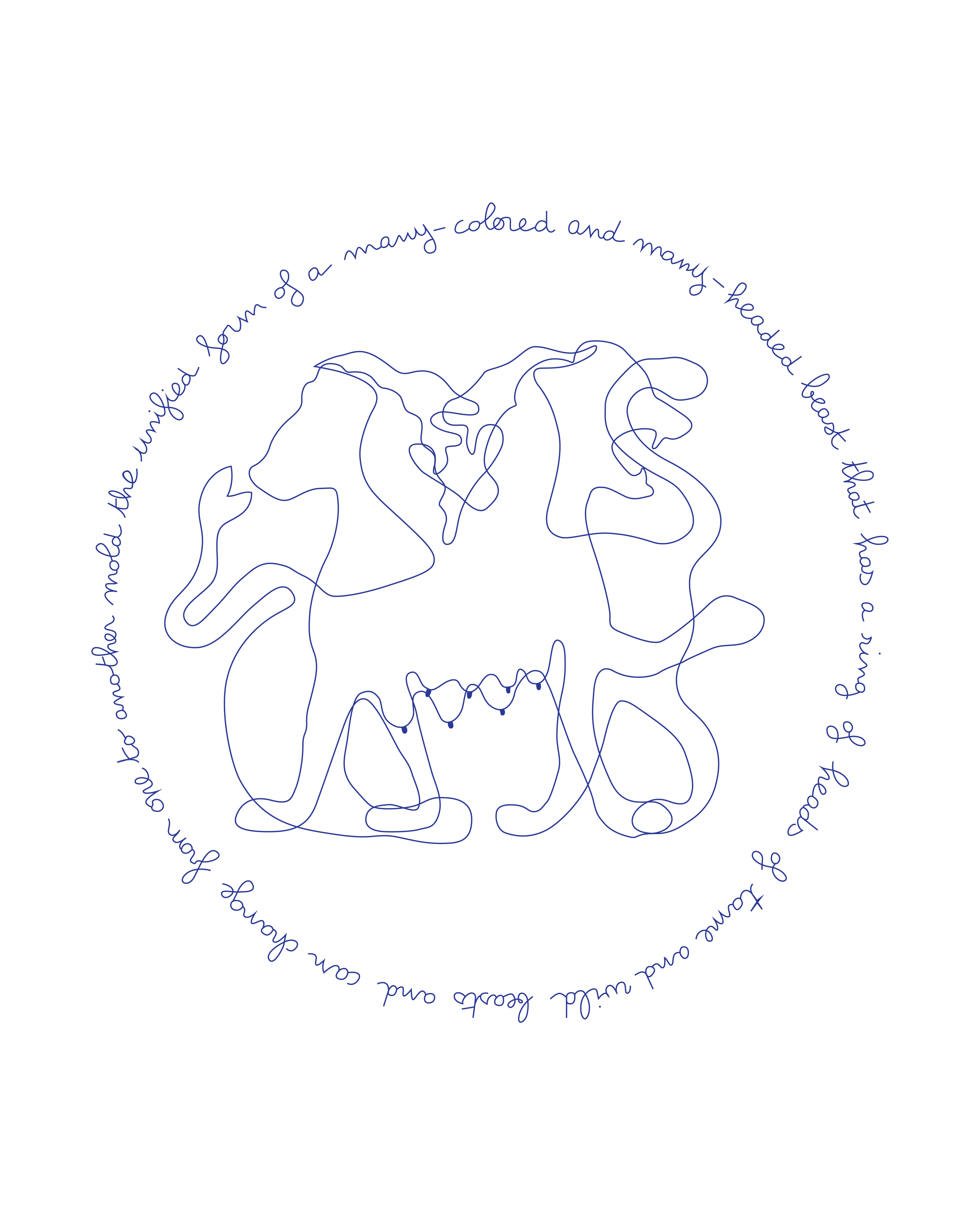 Chimera #1, 2023 serie from her to the moon voilage, broderie 200x315 cm