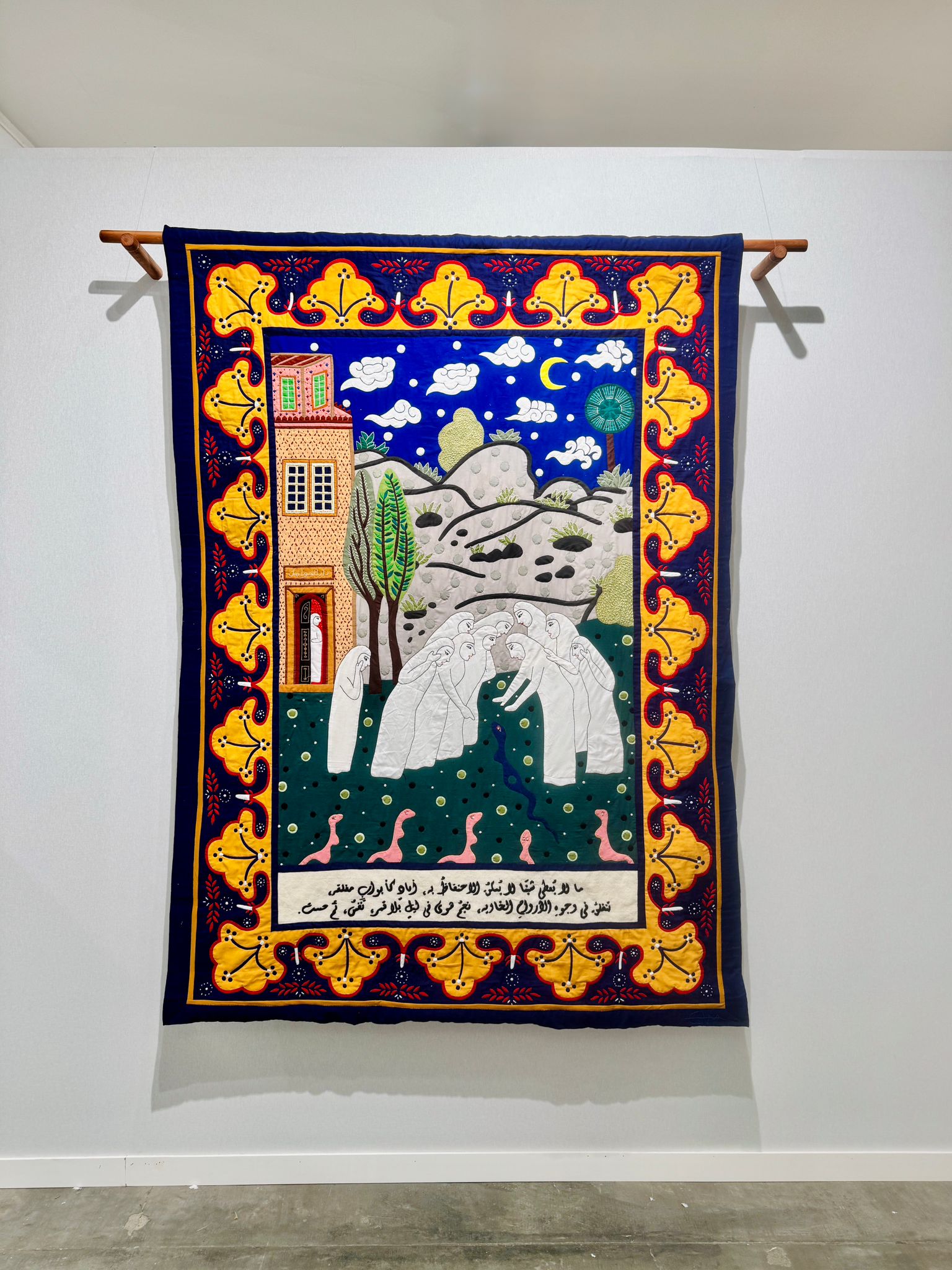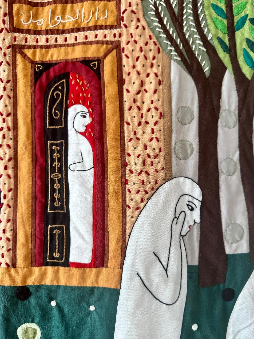 Chapitre 6_The Night's Forgetting - broderie, 2025 Serie Hayat al-Hayat Coton Égyptien, broderie appliqué fait main 180 x 130 cm